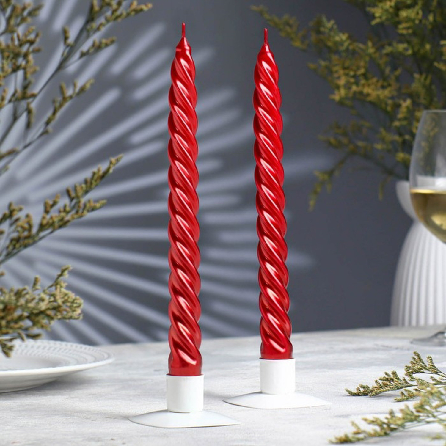 Набор свечей витых, 2,3х 24,5 см, 5 ч, 50 г, 2 штуки, красный металлик 1575423