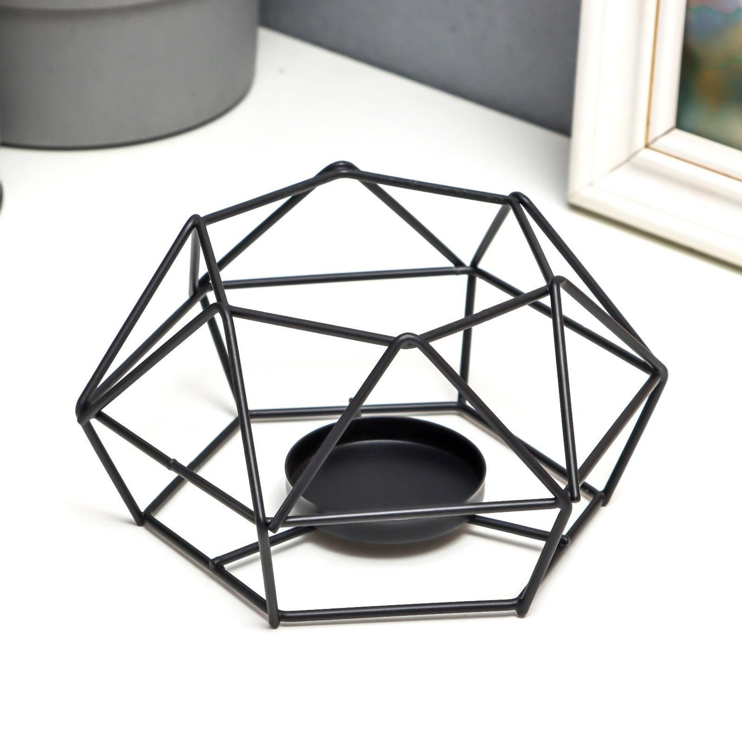 Подсвечник металл на 1 свечу "Тетраэдр" чёрный 7х15х13,5 см 6913096