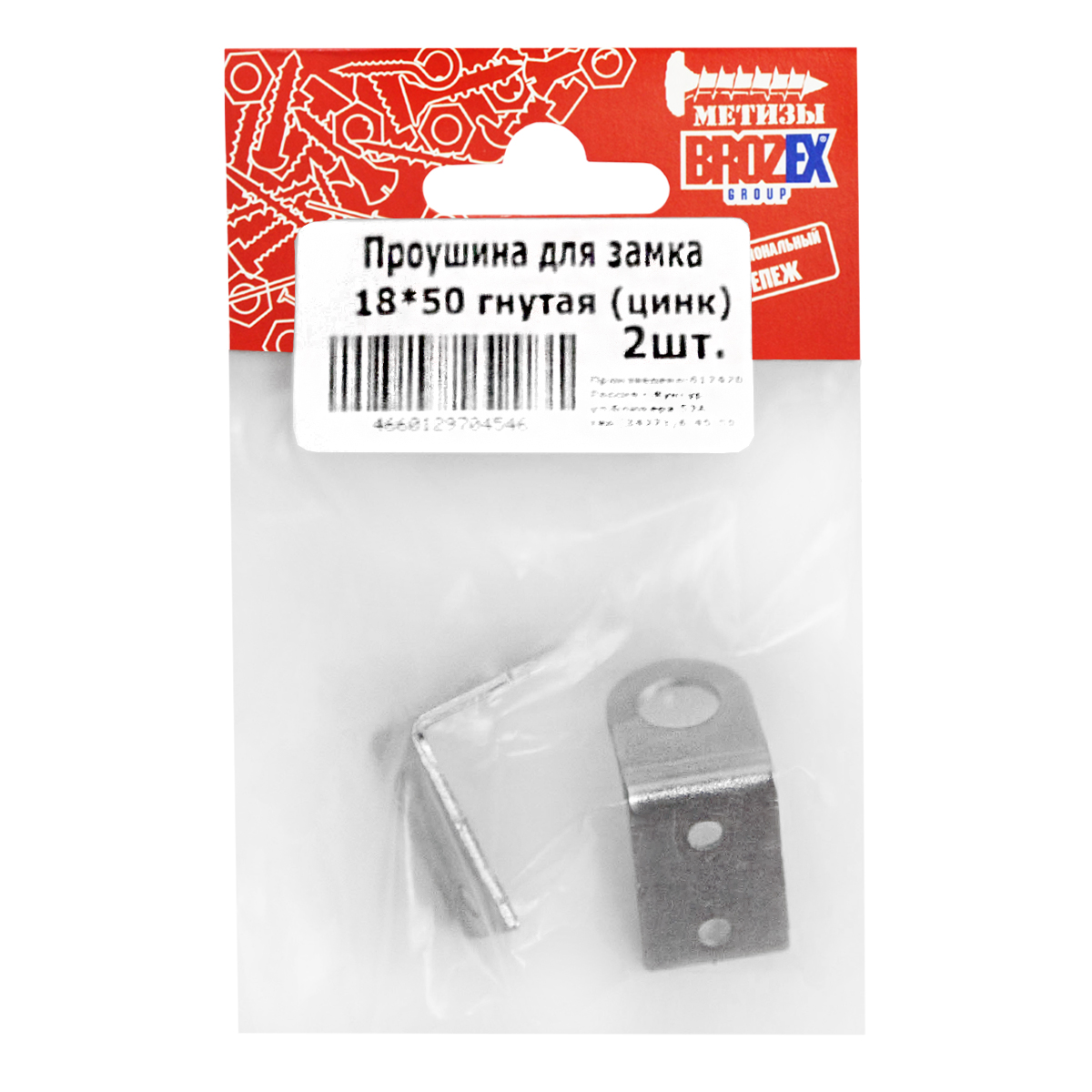 Проушина для замка гнутая 18*50 цинк б/шур (комплект 2шт.) ДомоСтрой *10/100