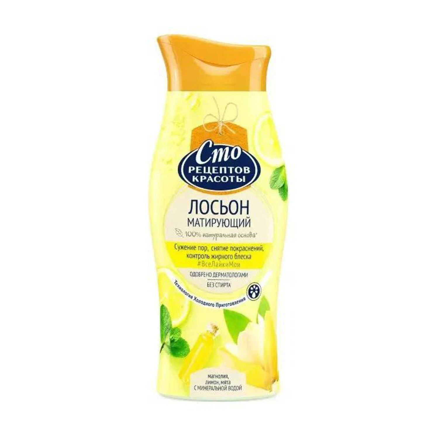 яяяЛосьон СТО РЕЦЕПТОВ КРАСОТЫ матирующий д/лица Антибактериальный эффект 100мл *1