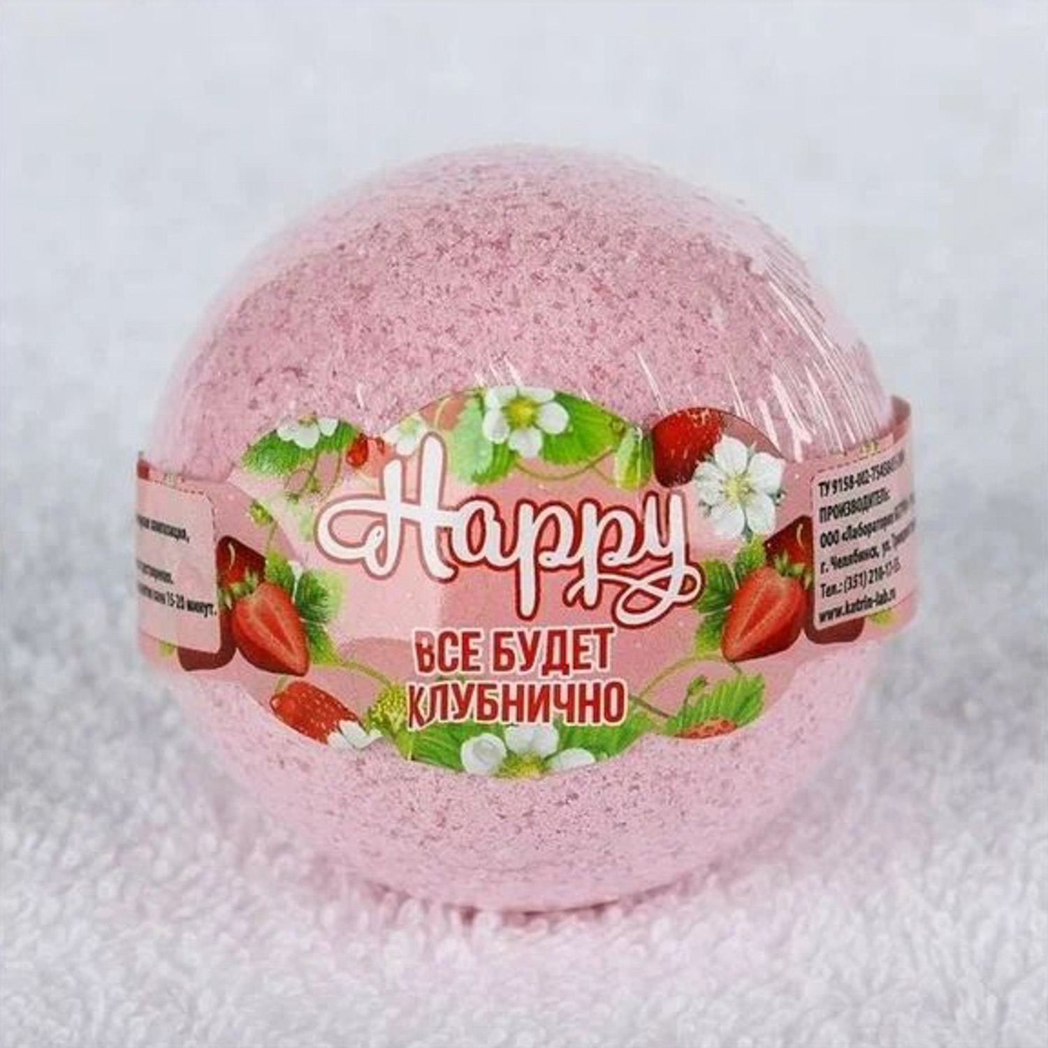 Соль д/ванн Бурлящий шар Happy Все будет клубнично 130г п/п
