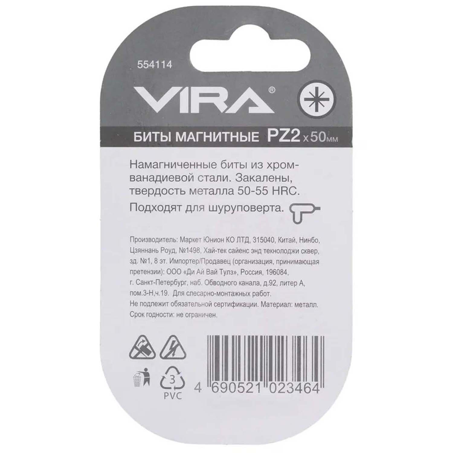 Биты магнитные PZ2x50 мм 2 шт. VIRA