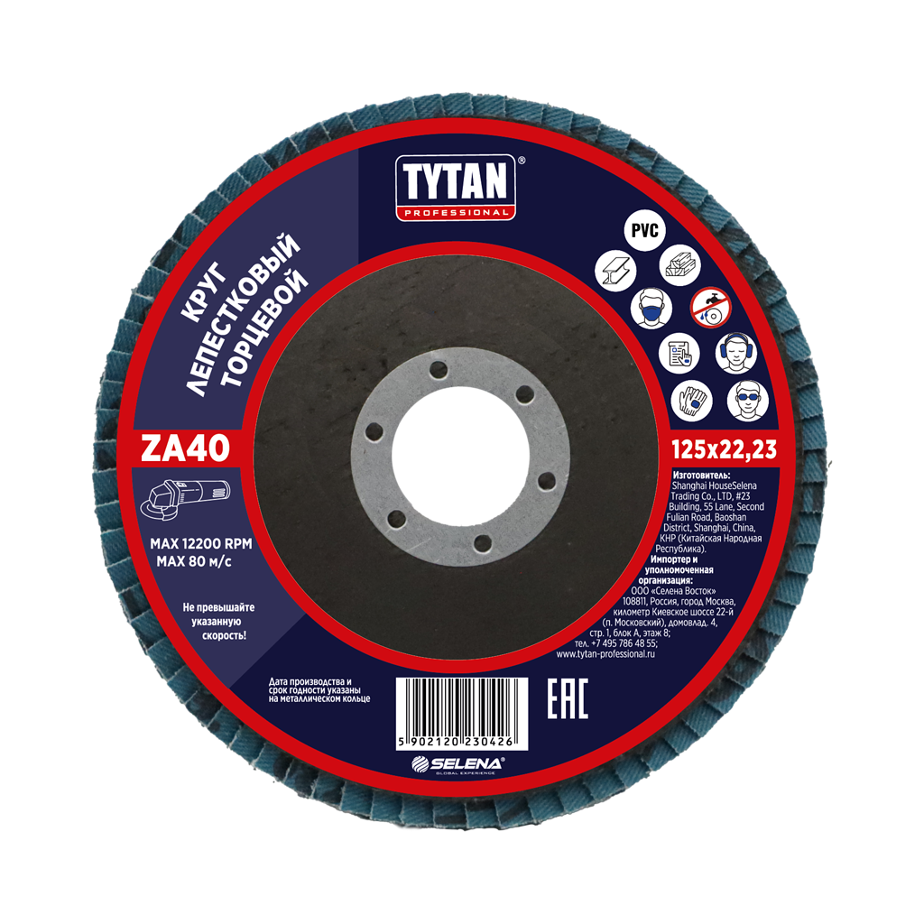 Круг шлифовальный лепестковый торцевой 125*22,23мм ZA зерно 40 оксид циркония TYTAN *10/200