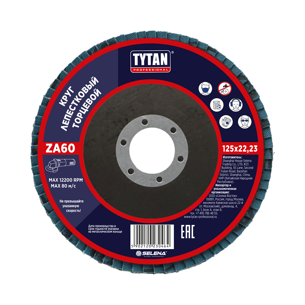 Круг шлифовальный лепестковый торцевой 125*22,23мм ZA 60 оксид циркония TYTAN *10/200