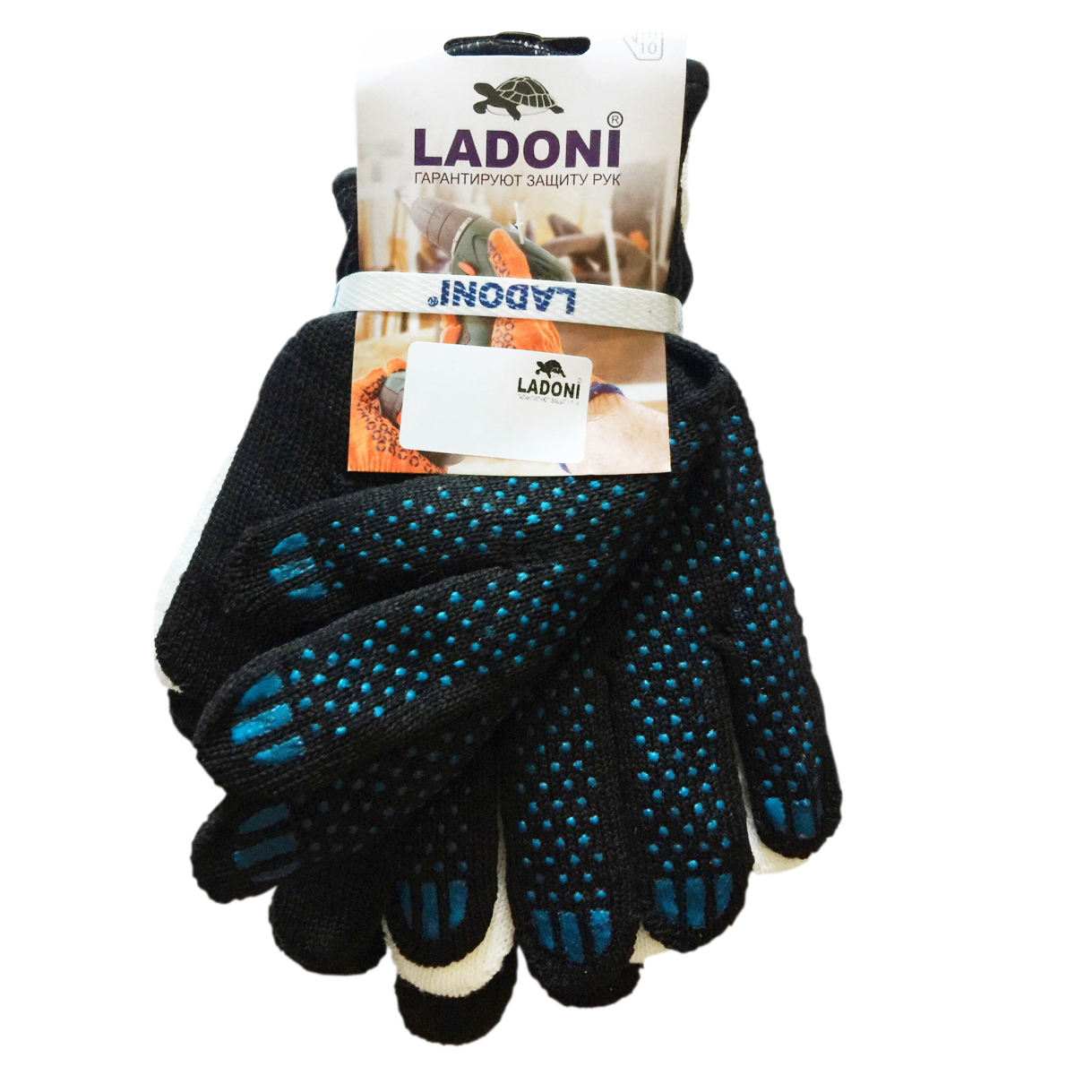 Перчатки ХБ с ПВХ НАБОР 2 пары: зим 10кл5нит95гр черн+ бПВХ 10кл4нит37гр бел(487) Ladoni