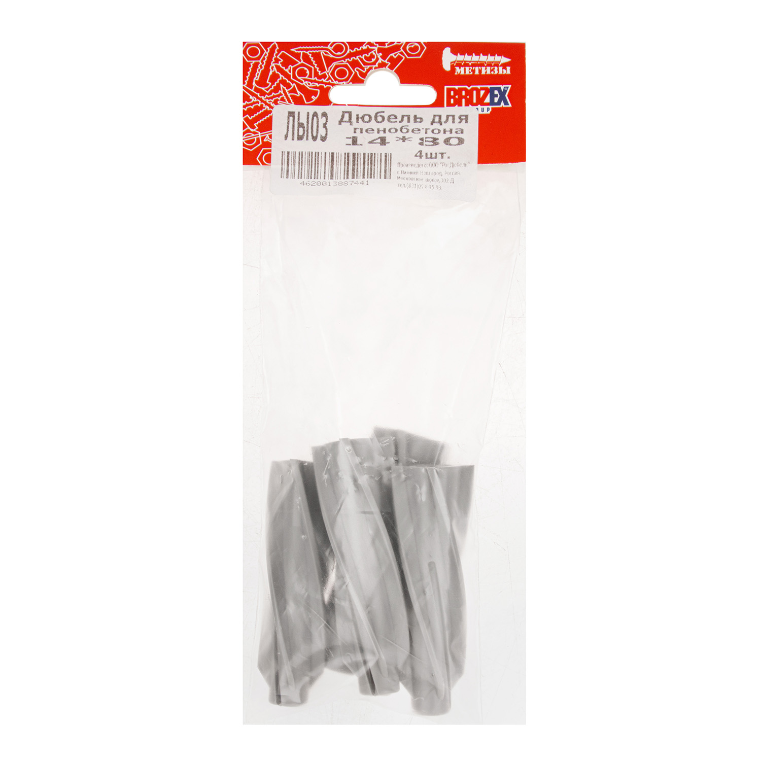 Дюбель для пенобетона BROZEX 14*80 пакет (4шт) *10/100