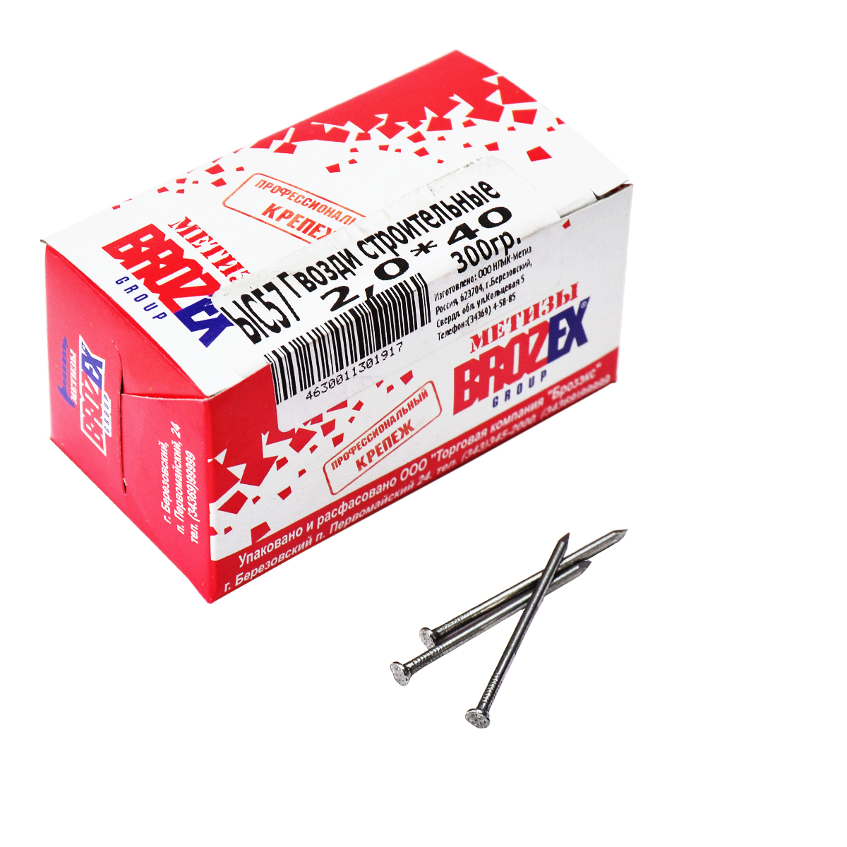 Гвозди строительные 2х40 мм BROZEX, 0.3 кг