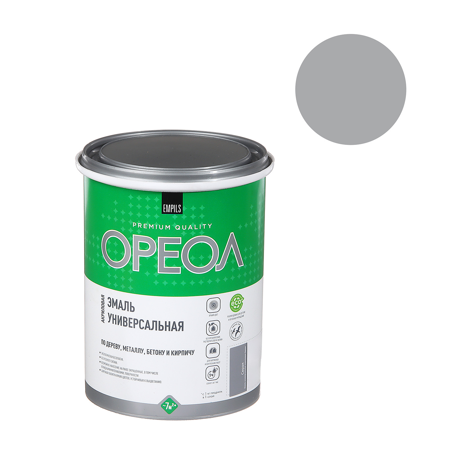 Эмаль акриловая серая 1 кг Ореол *1/6/336