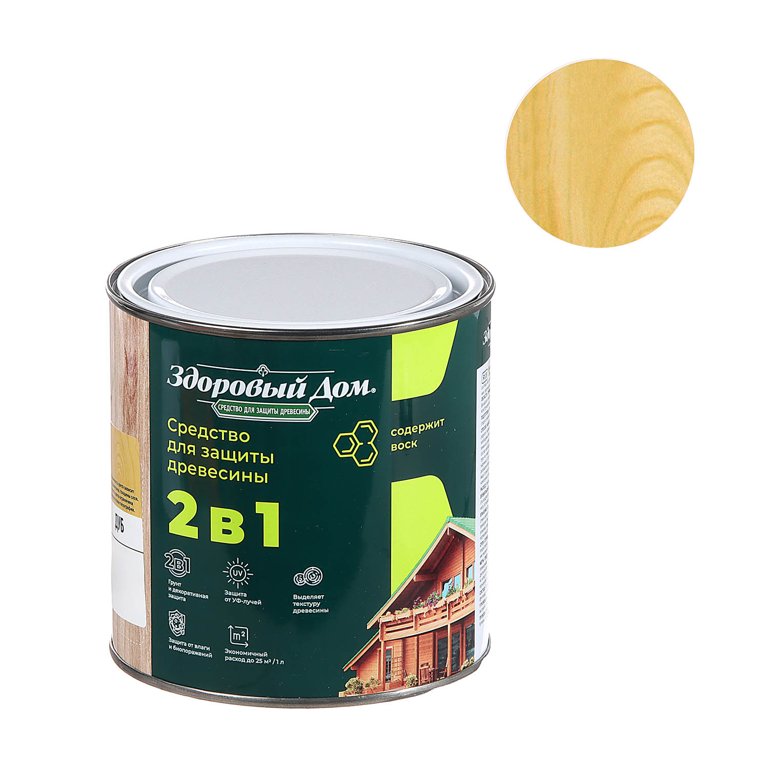 Деревозащитное средство Здоровый дом 2 в 1 дуб 0.8 л представляет собой высокоэффективное покрытие для декоративной отделки древесины и защиты поверхностей на срок до 8 лет. Формула 2 в 1 позволяет наносить состав без предварительного использования грунта.