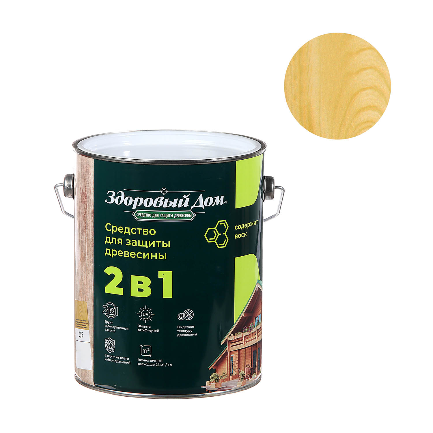Деревозащитное средство Здоровый дом 2 в 1 дуб 2.7 л представляет собой высокоэффективное покрытие для декоративной отделки древесины и защиты поверхностей на срок до 8 лет. Формула 2 в 1 позволяет наносить состав без предварительного использования грунта.