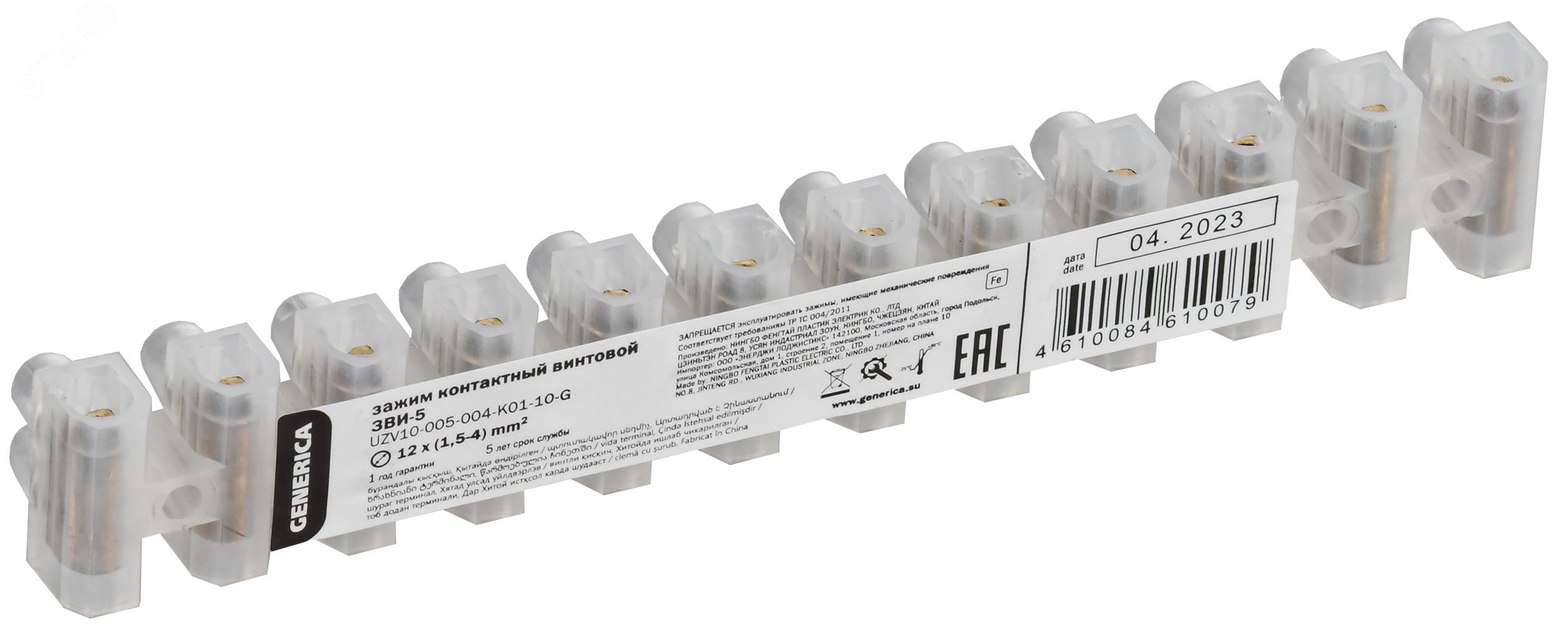 Колодка клемная ЗВИ-5 1,5-4мм2 (12пар) белый GENERICA IEK *10/1000