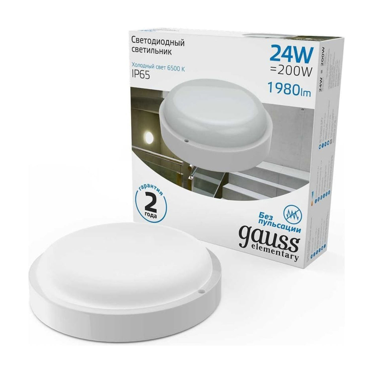 Светильник накладной светодиодный 24Вт 6,5К 1980Лм IP65 D210x52 круг белый ЖКХ Gauss 126411324 *1/40