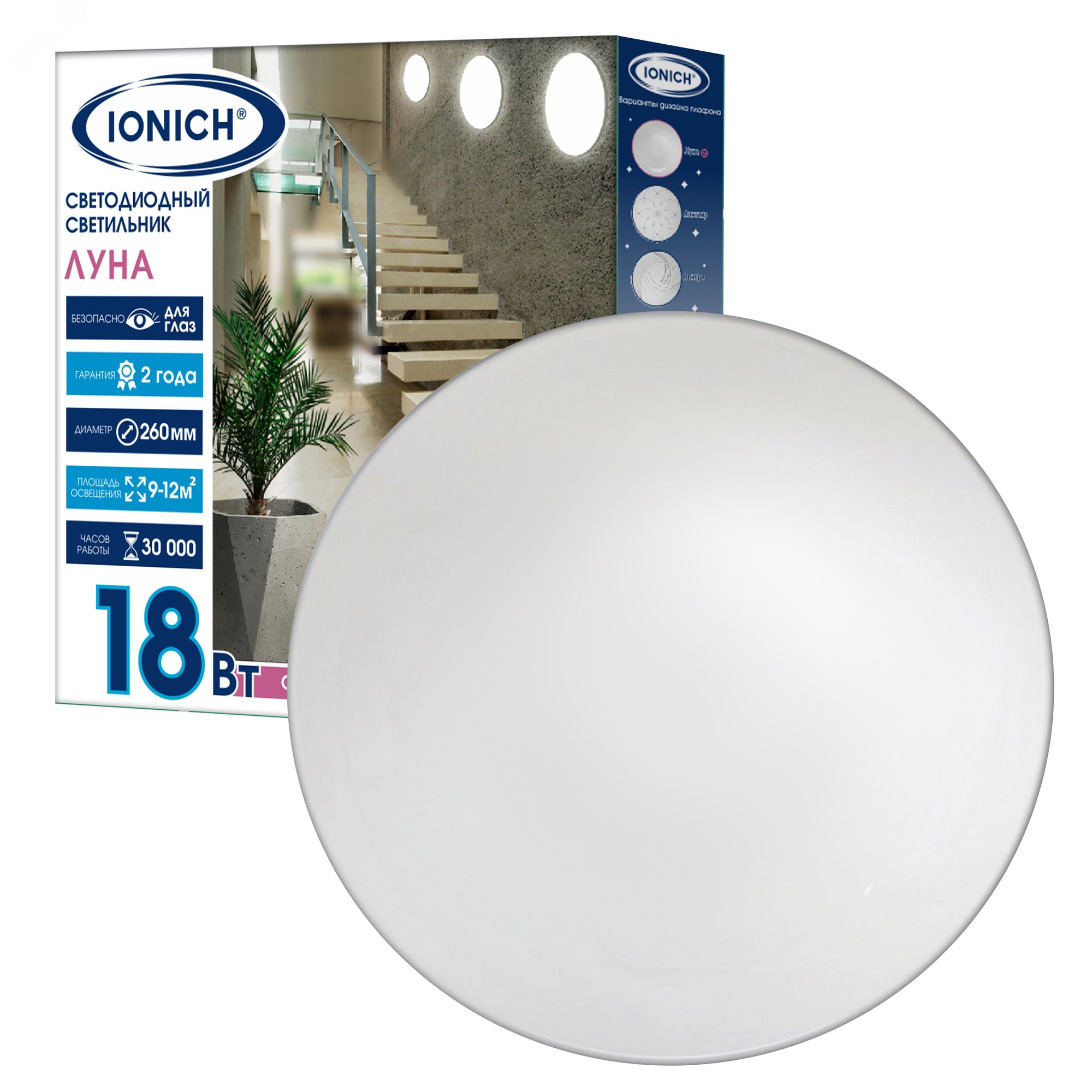 Светильник светодиодный акриловый 230мм IONICH "Луна" 18Вт 6500К 1260Лм S=9-12м2 1755 *1/40