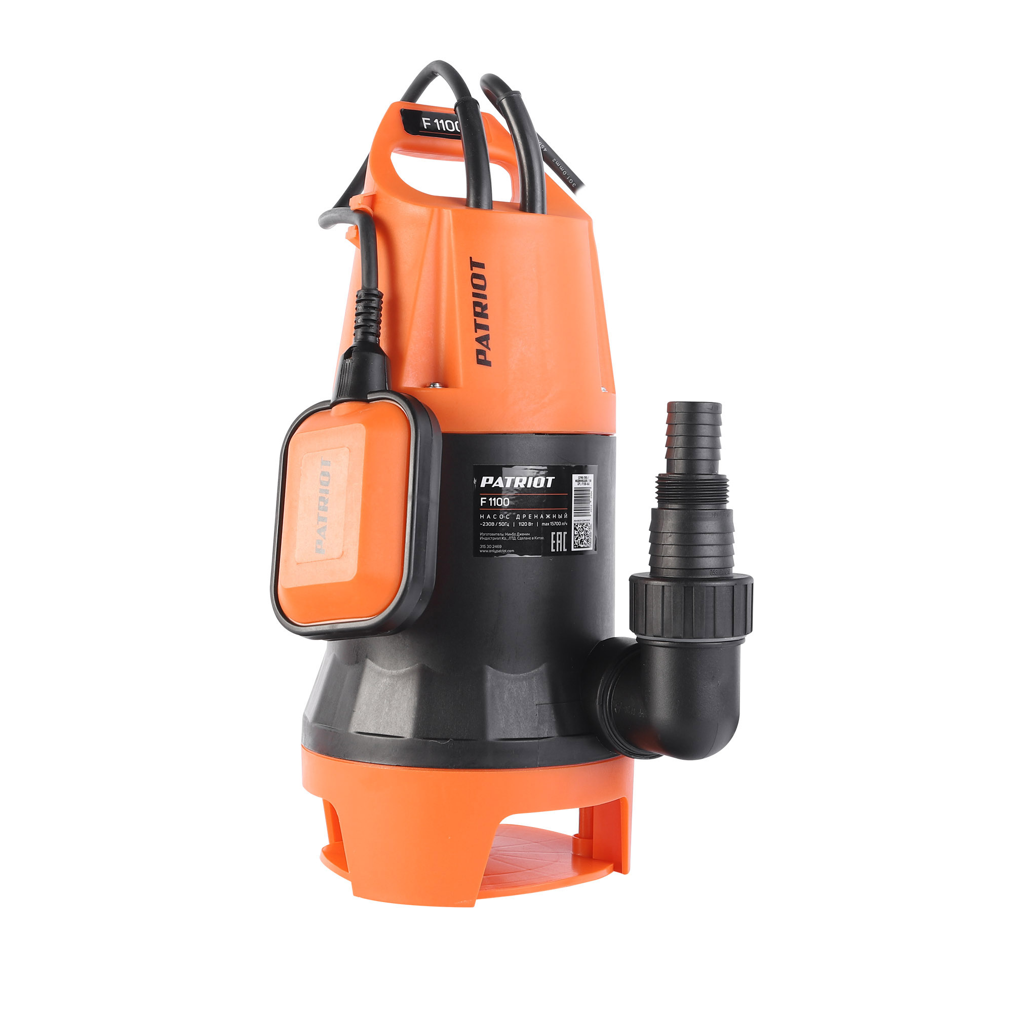 Насос погружной дренажный д/грязной воды 1120 Вт 15700 л/час. PATRIOT F 1100, корпус - пластик
