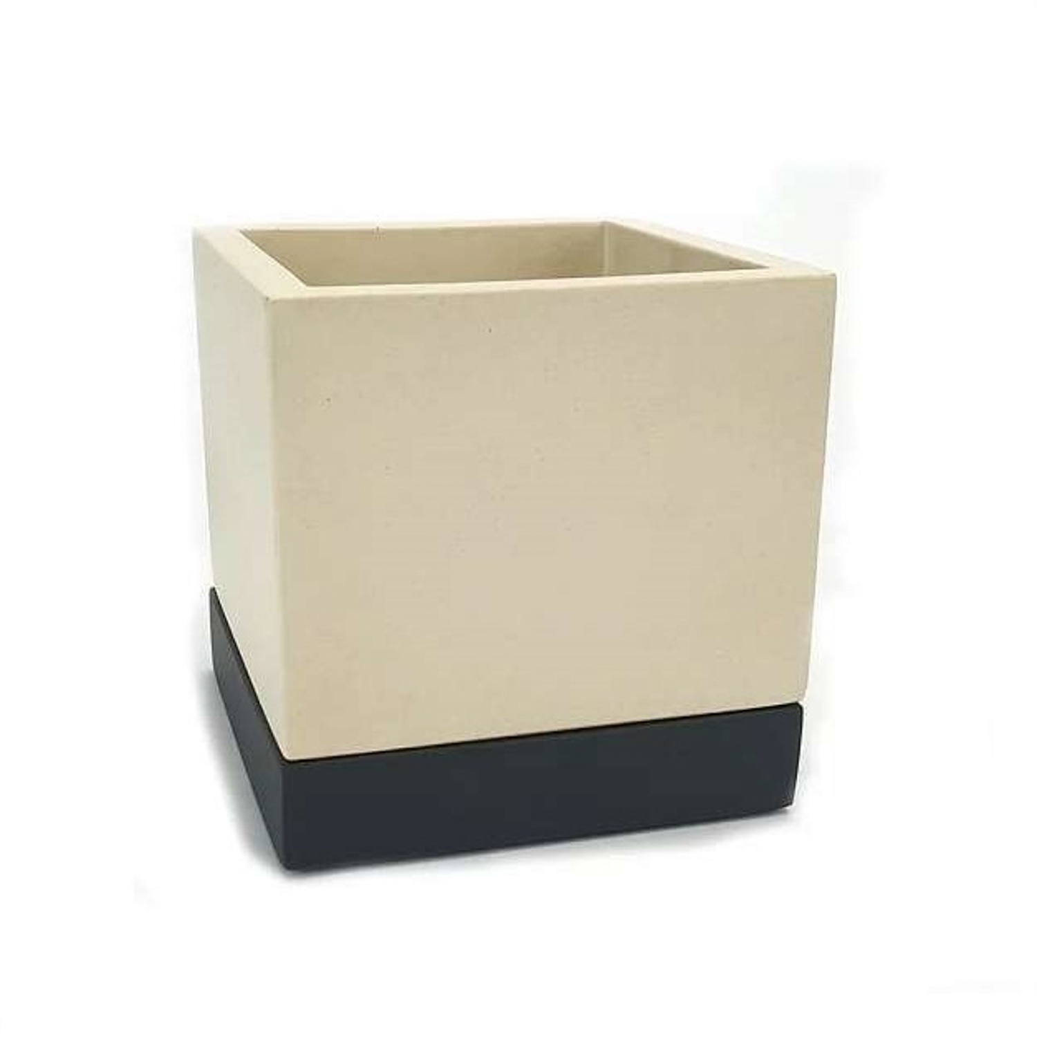 Кашпо гипсовое "Лофт" 0,5л 100х100мм h104мм с поддоном  Слоновая кость/Антрацит ("VipSet") *5