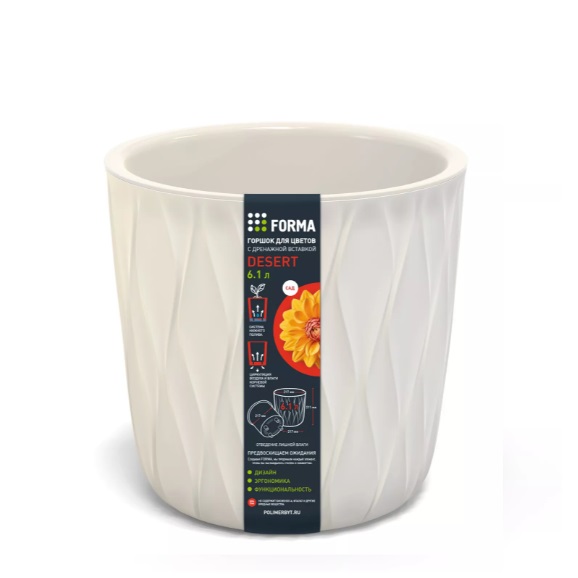 Кашпо пластм. "Desert" 6,1л d верха 217мм h211мм со вставкой Молочный 86607 *1/10