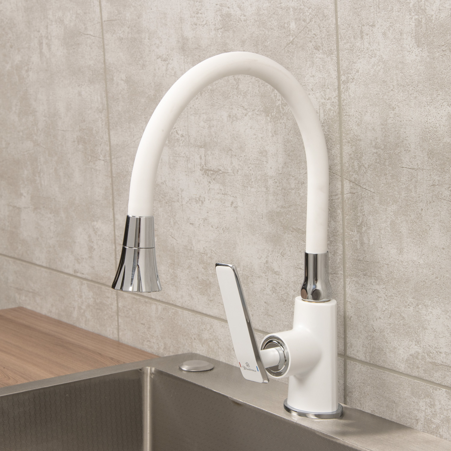 Смеситель для кухни Diadonna D137-41W гибкий излив, белый *1/10