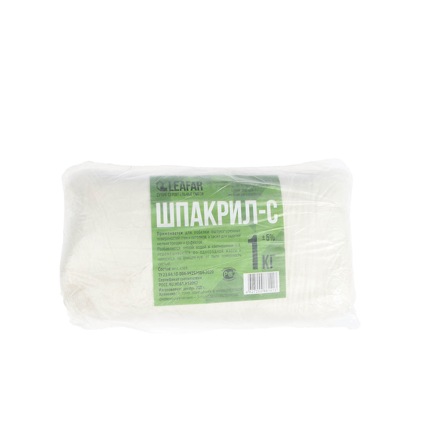 Сухой порошок для разведения водой. Шпакрил разбавляется теплой водой в соотношении 1:3, перемешивается до однородной массы и наносится на очищенную от пыли поверхность кистью. Предназначен для побелки оштукатуренных поверхностей стен и потолков, а также для заделки мелких трещин и дефектов.