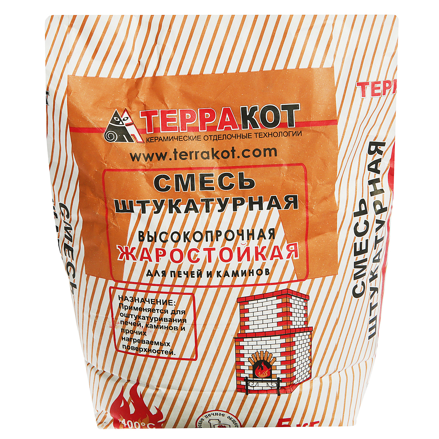 Штукатурка жаростойкая Терракот — экологически чистая, высокопластичная сухая смесь. Легко наносится и выравнивается. Обладает высокой силой сцепления (адгезией) с поверхностью. Сохраняет свои свойства при нагреве до 400 °С. Марка прочности на сжатие: М75.