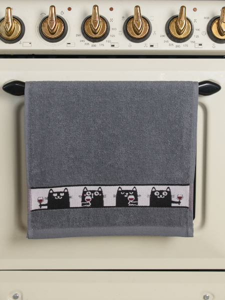 Полотенце махровое 30*60см Wine cats темно-серый 400гр/м2 Casa Conforte *10