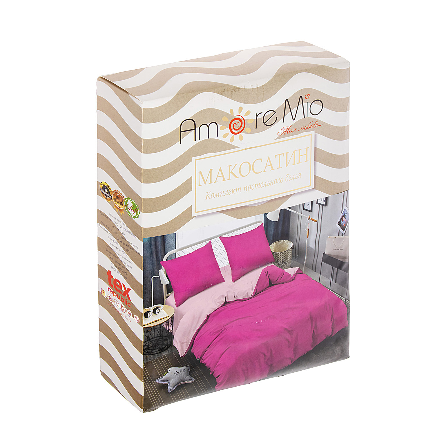 Данный комплект постельного белья торговой марки Amore Mio изготовлен из инновационной синтетической ткани, состоящей из тончайших волокон, благодаря чему обладает рядом достоинств: материал не садится и не мнется после стирки, на поверхности не образуются катышки, цвета сохраняют свою яркость, не линяет, не выгорает на солнце, гипоаллергенен.