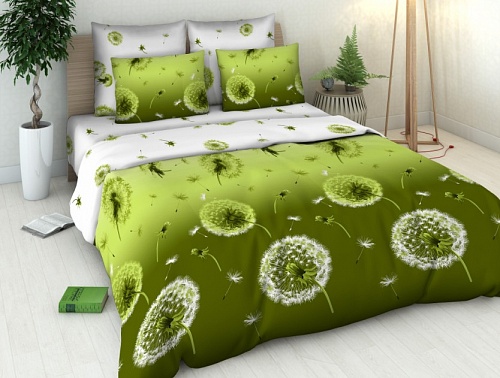 Летящие одуванчики, покоряясь дуновению ветра, разносятся по Вашей комнате, неся с собой чувство свежести, свободы и гармонии с природой. Наше постельное белье изготовлено из 100%-хлопка ткань бязь, собственного производства.
