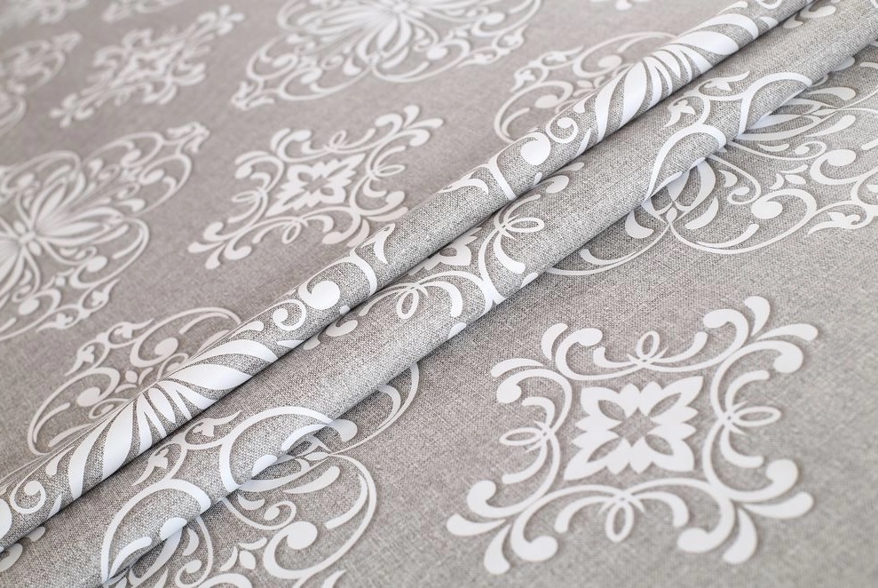 Клеёнка на тканевой основе "Print" "Белые вензеля,узоры" серый фон шир.1,37м GW-21322 "Great Way"*20