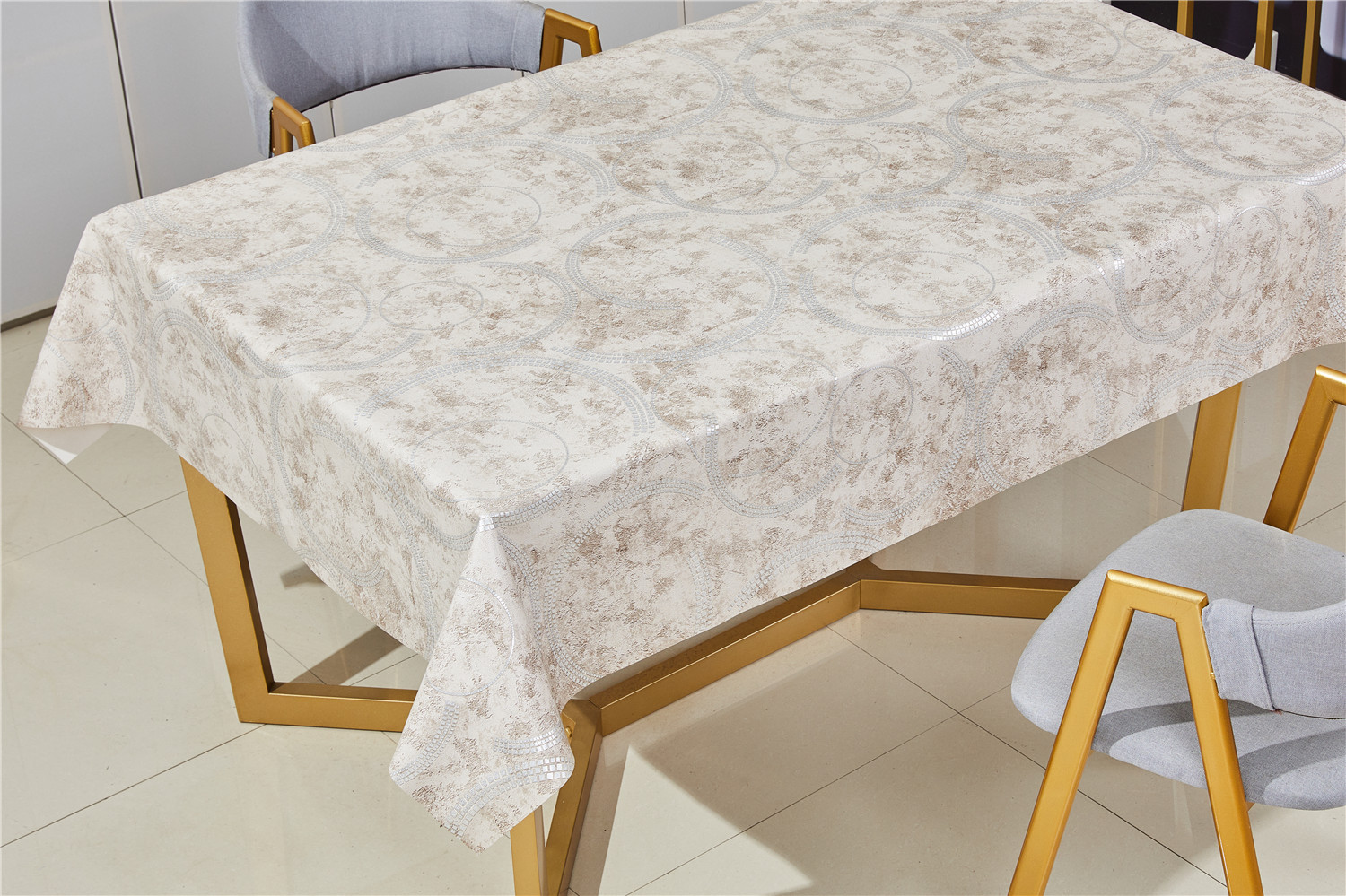Клеёнка на тканевой основе, полиур.покр."Kleo" "Соцветия с кругами" беж.с серебр.ш.1,37м SFPU-8 *20