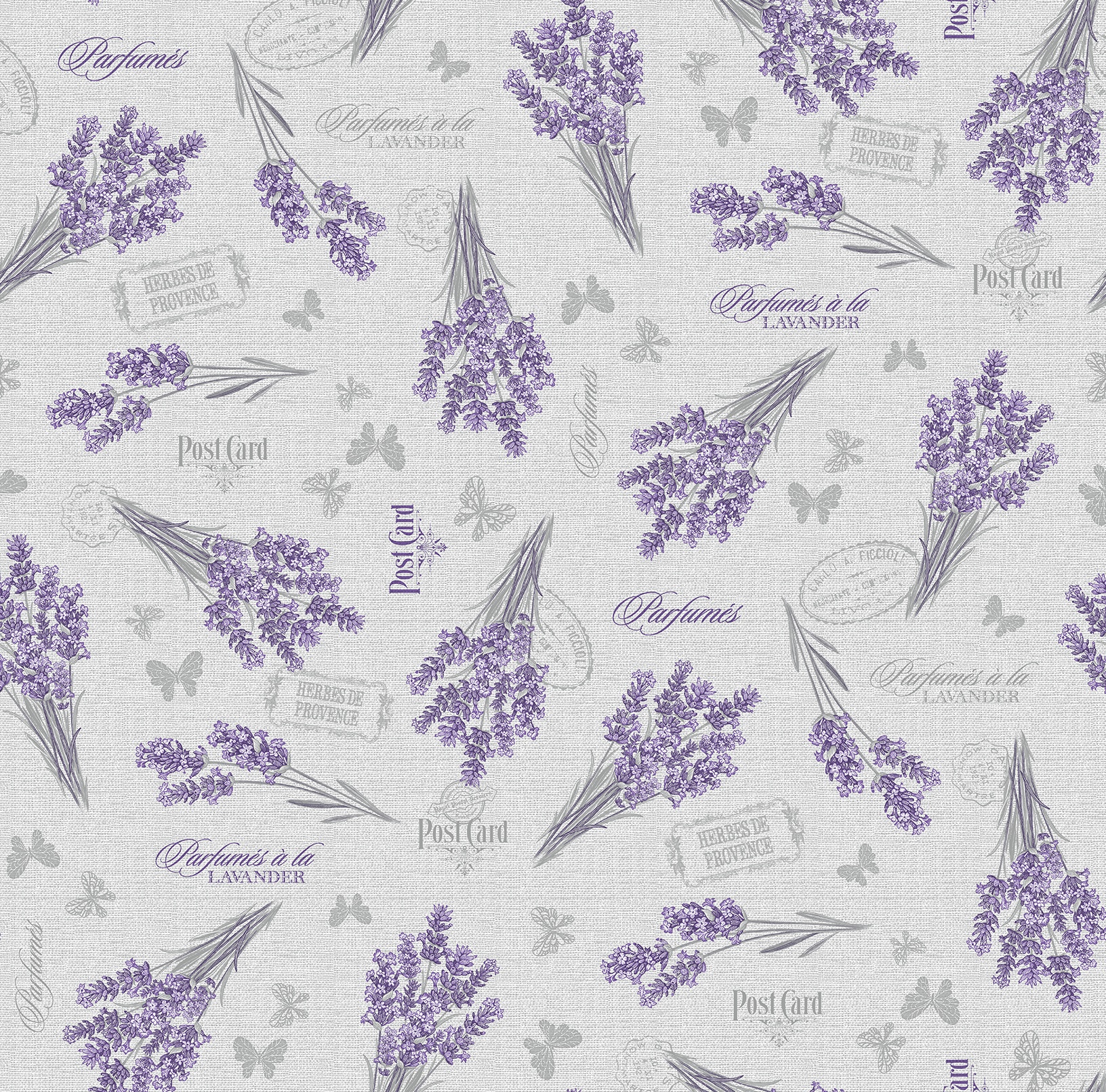 Клеёнка на тканевой основе "Этюд" "Букетики лаванды" на сером шир.1,25м 644/15 "Колорит" *25