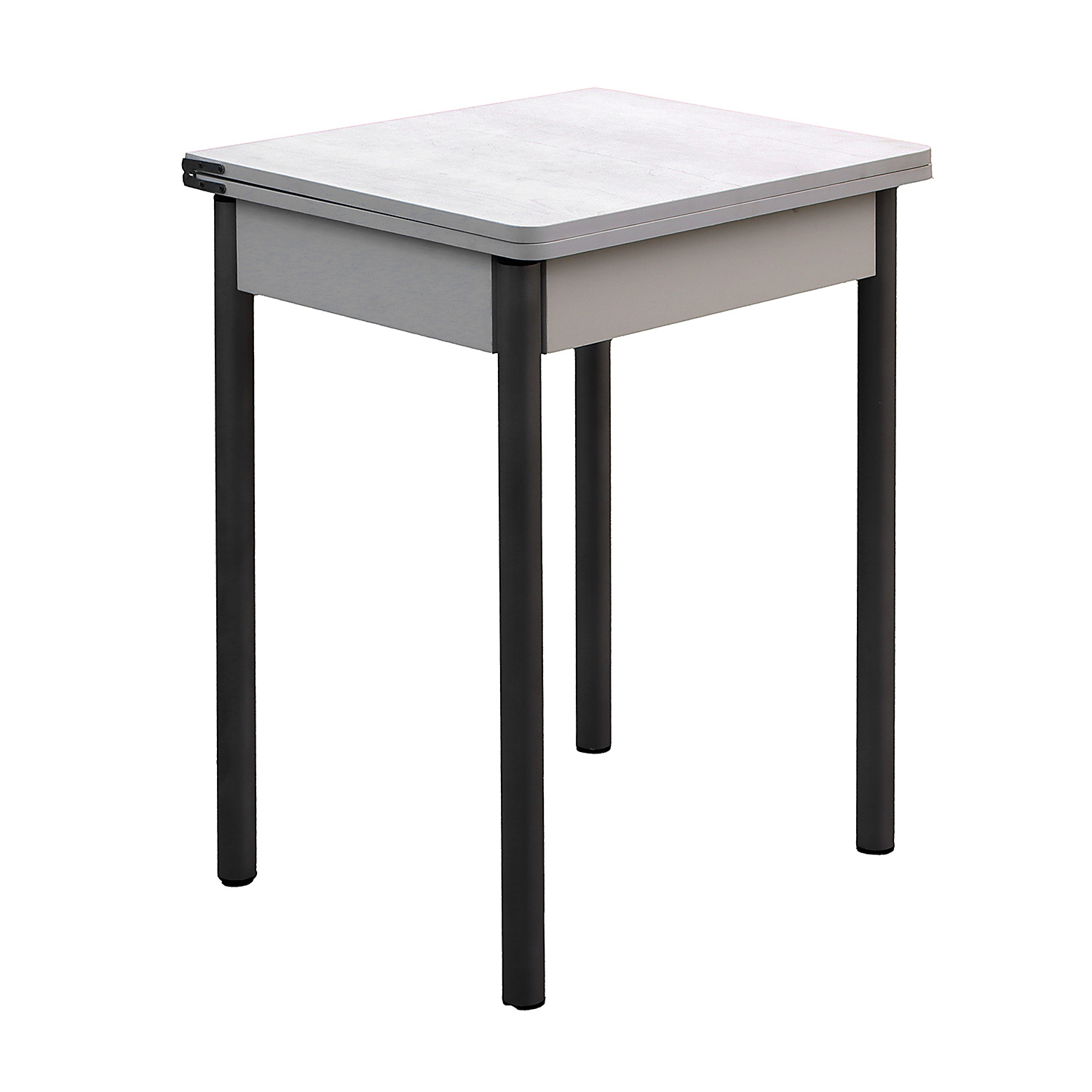 Стол раскладывается с помощью ломберных петель и поворотной столешницы. Столешница выполнена из высококачественного ЛДСП, толщиной 16 мм. Стол со скругленными углами. Металлические ножки из круглой трубы максимально просты в установке, и надежны в эксплуатации, изготовлены из трубы диаметром 40 мм.