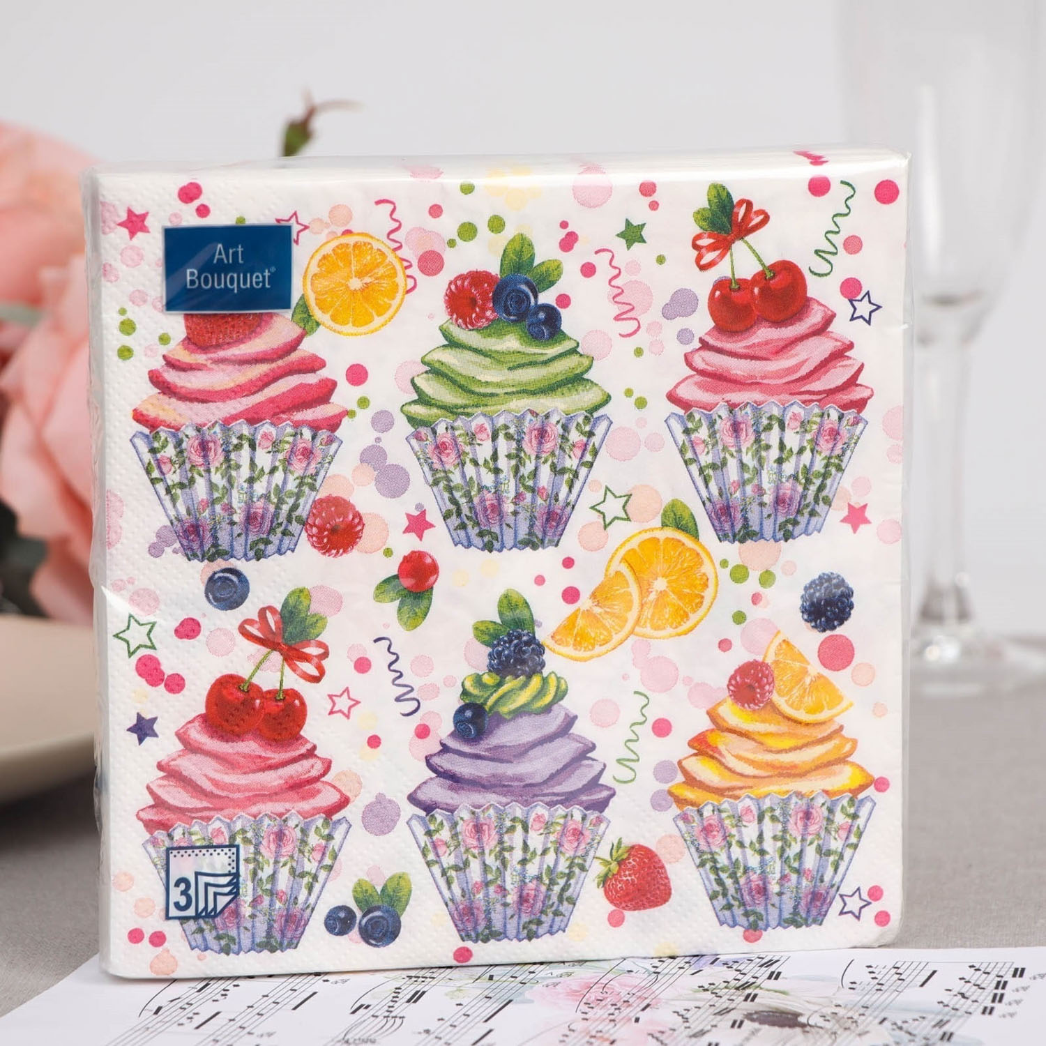 яяяСалфетки бумажные Art Букет Сладкие пирожные 33*33 20л 3слоя 37346 *12