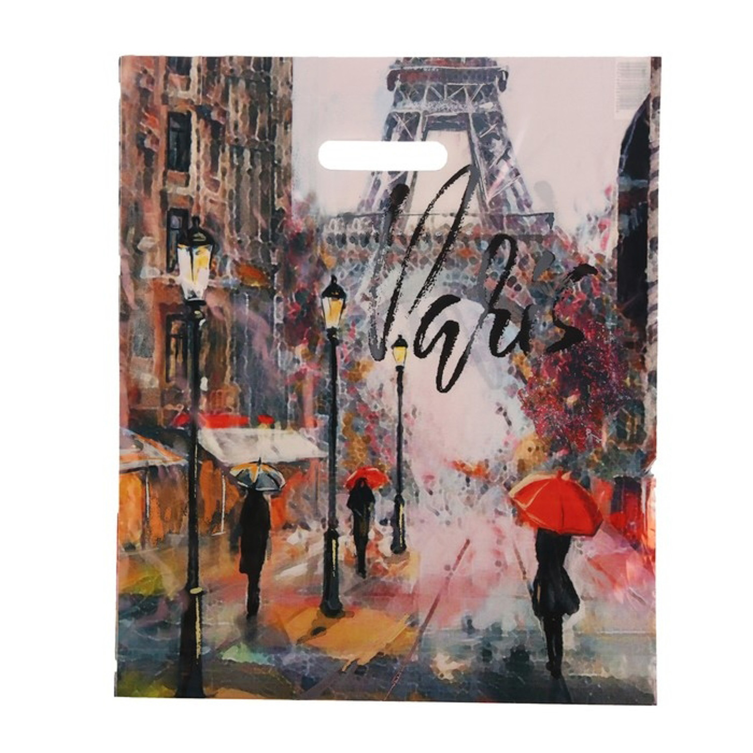 Пакет "Дождь в Париже", полиэтиленовый с вырубной ручкой, 38х45 см, 50 мкм 9783026