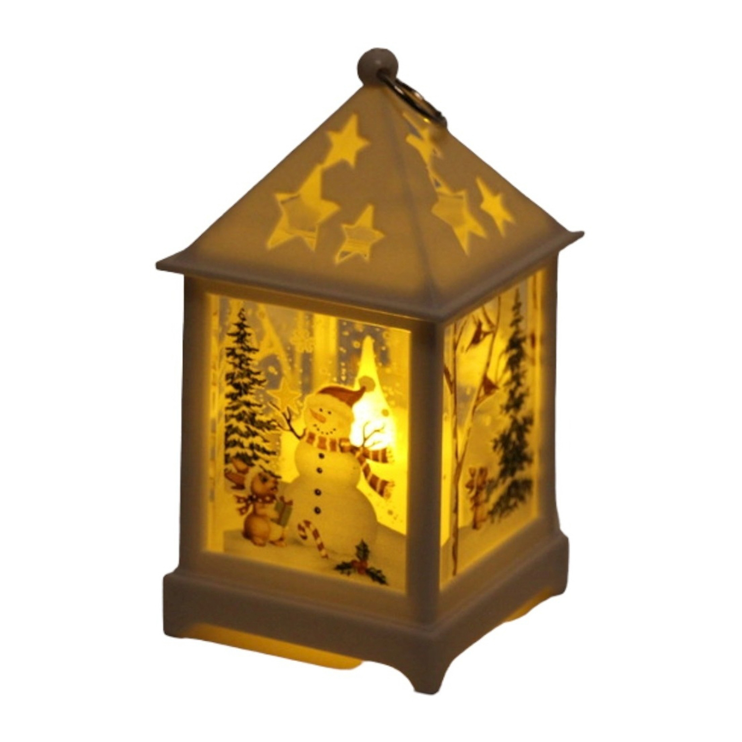 яяяСувенир с подсветкой "Звездный домик со снеговичком" 12,5*6,5 см, Белый