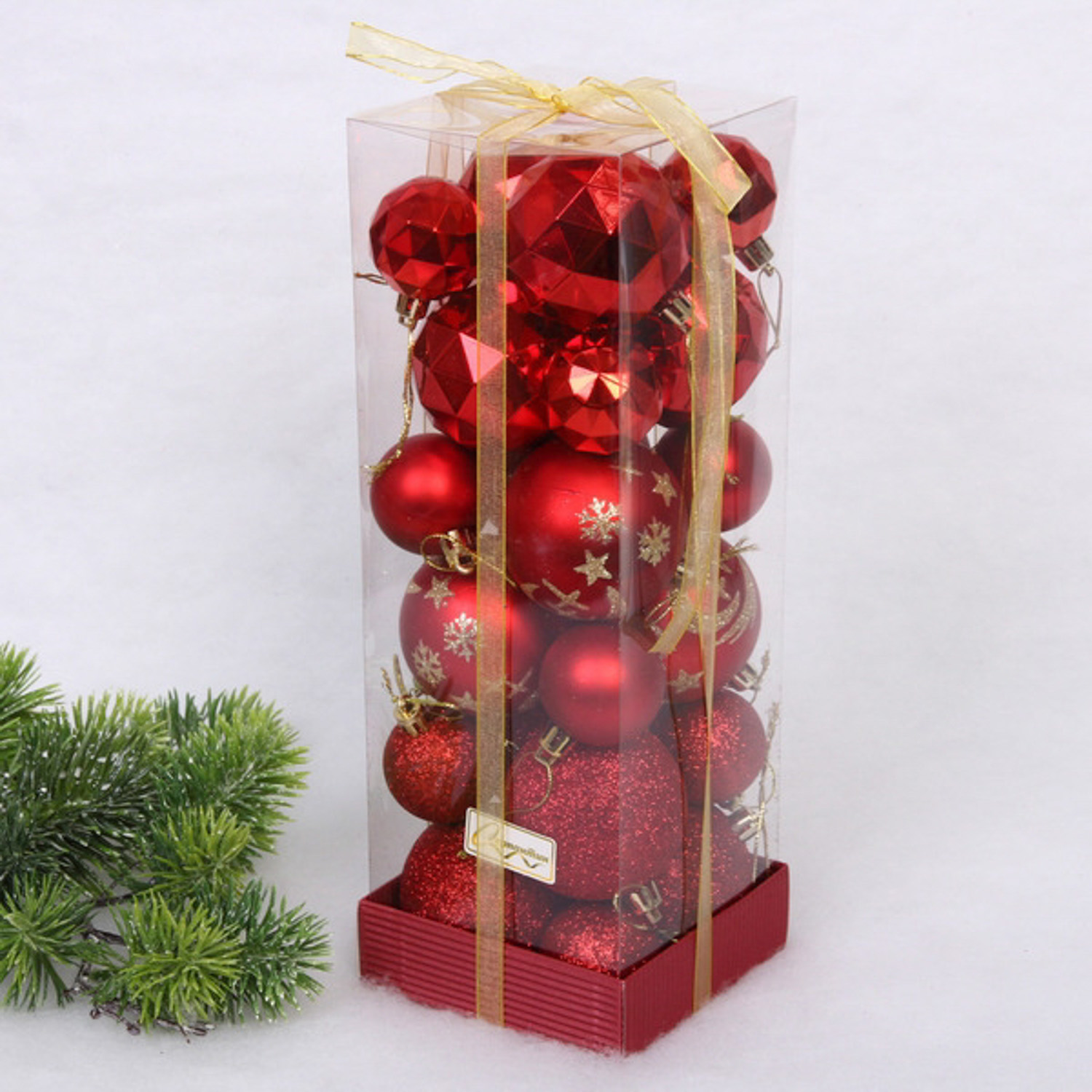 Набор шаров "Winter shine" 6 см + 4 см (24 предмета), Красный