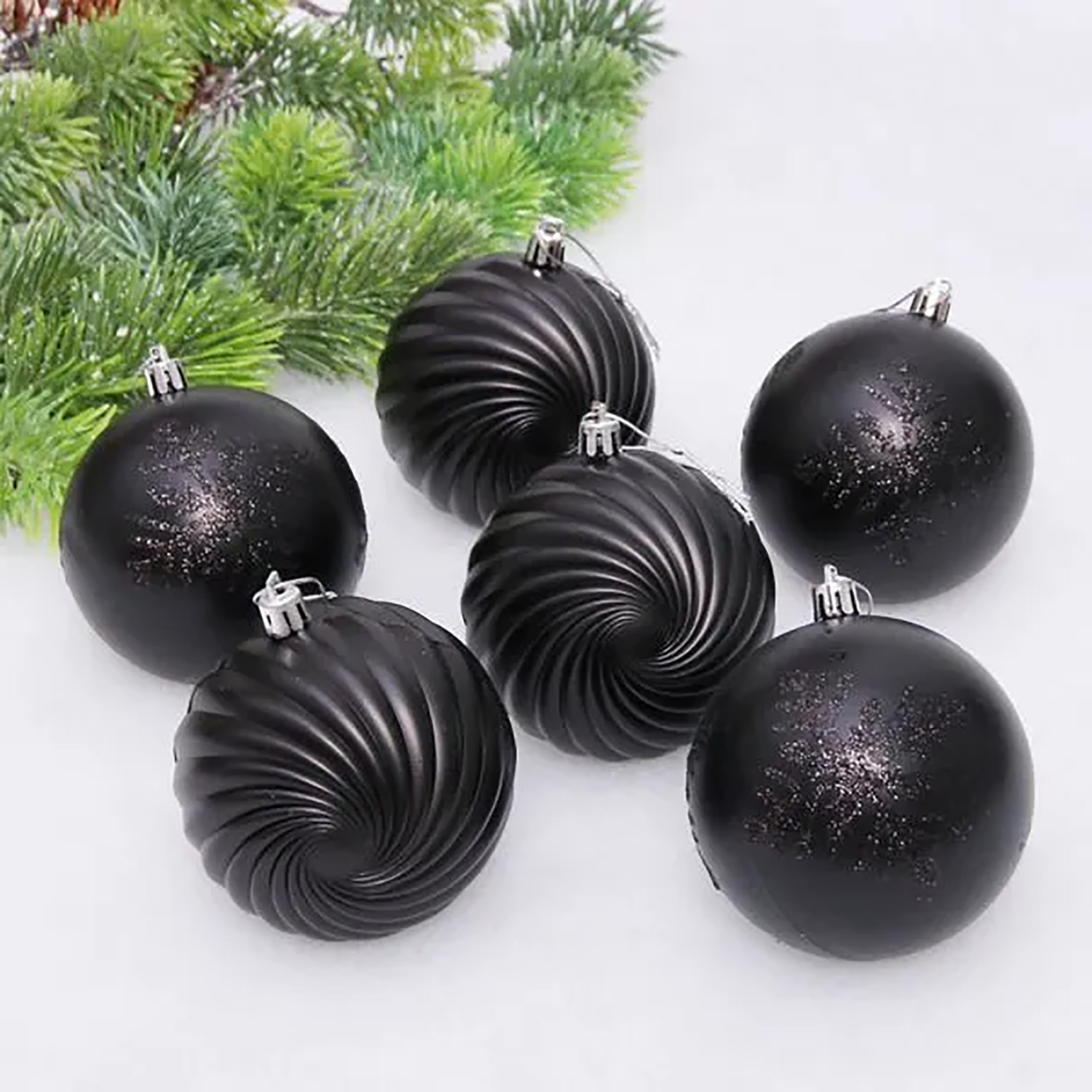 Новогодние шары "Изящные узоры" 8 см (набор 9 шт), Черный