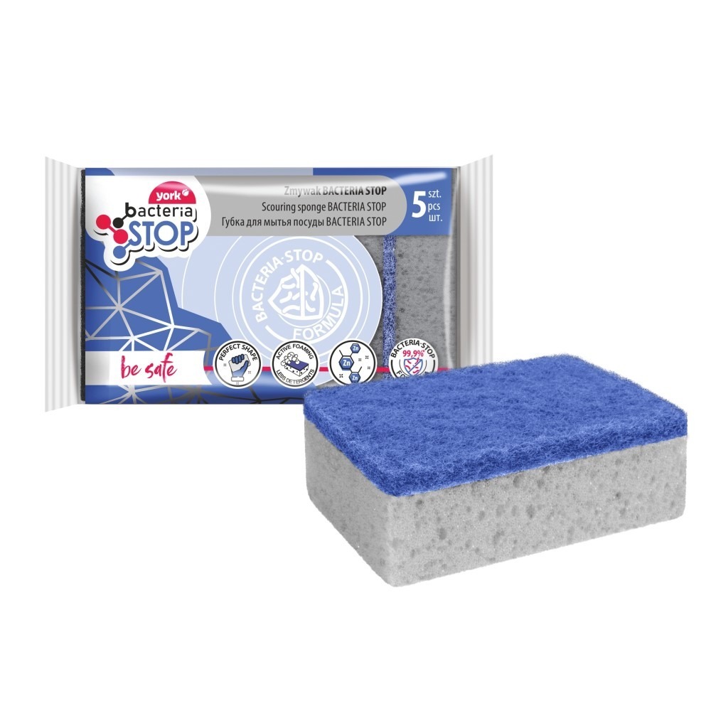 Губки для посуды "bacteria STOP" 5шт 034040 ("YORK") *20