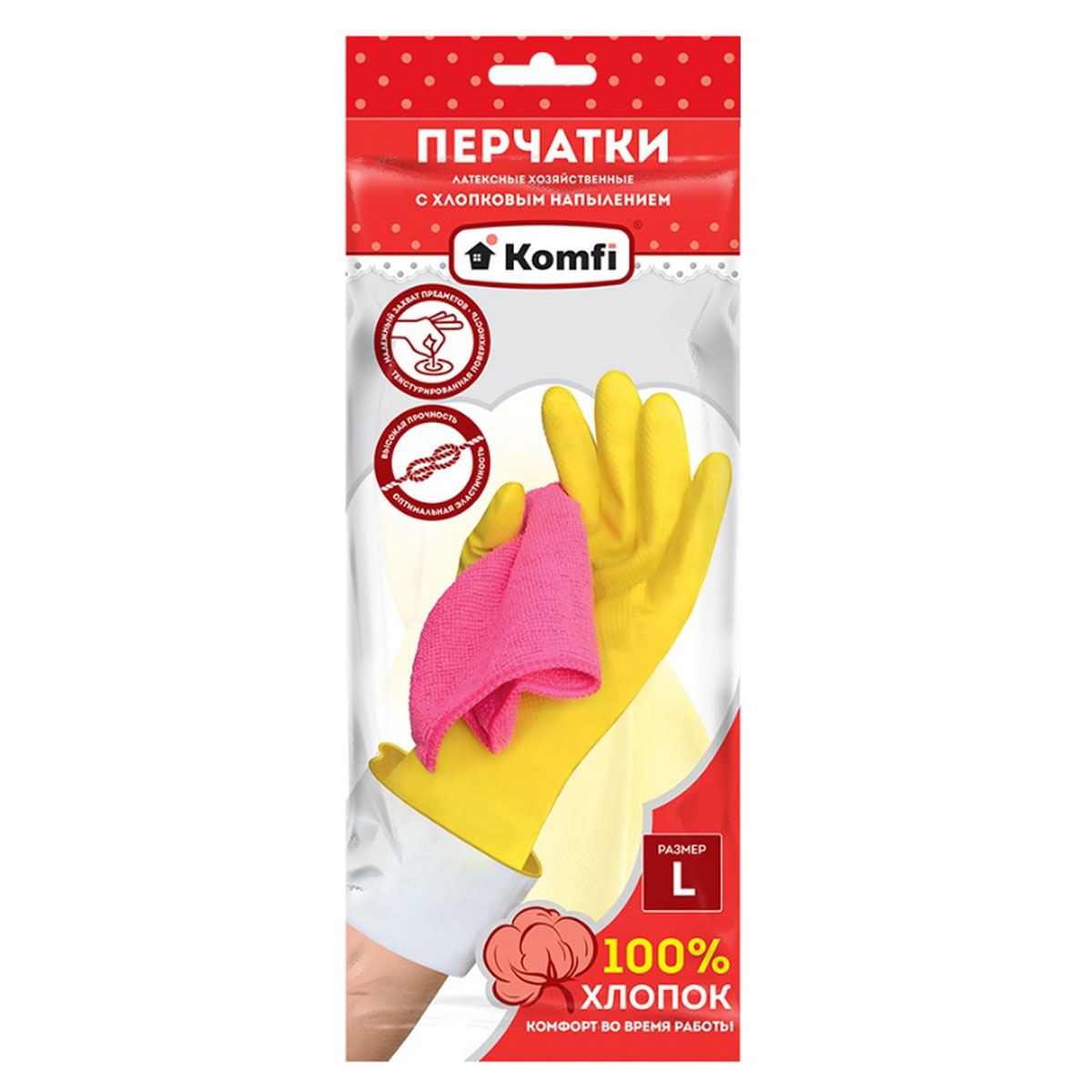 Перчатки латексные с хлопковым напылением L (большой) 1пара Желтые DGL026P "Komfi" *12/120